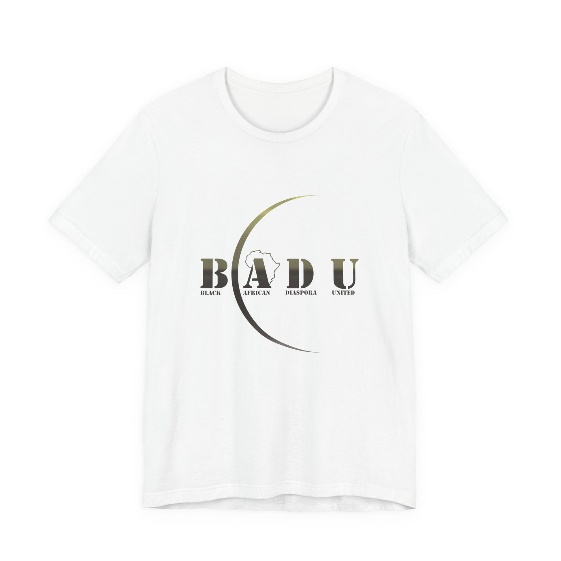 BADU White T-shirt (Black African Diaspora United) for Black History Month. This T-shirt exudes cultural pride and awareness, making it a perfect addition to anyone celebrating Black History Month. Its lightweight fabric and retail fit make it suitable for various occasions, from casual wear to semi-formal settings. Product features - Lightweight 100% Airlume combed and ring-spun cotton fabric - Crew neckline for classic style - Tear-away label for comfort - Ribbed knit collar with seam for shape retention - Shoulder tape for stability Care instructions - Machine wash: cold (max 30C or 90F) - Non-chlorine: bleach as needed - Tumble dry: low heat - Iron, steam or dry: medium heat - Do not dryclean